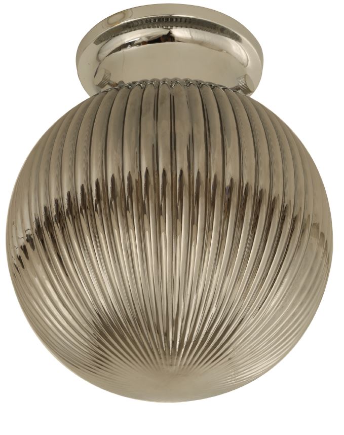 DIY Batten Fitting Smoke Glass Ribbed SPHERE OD200mm w/Chrome