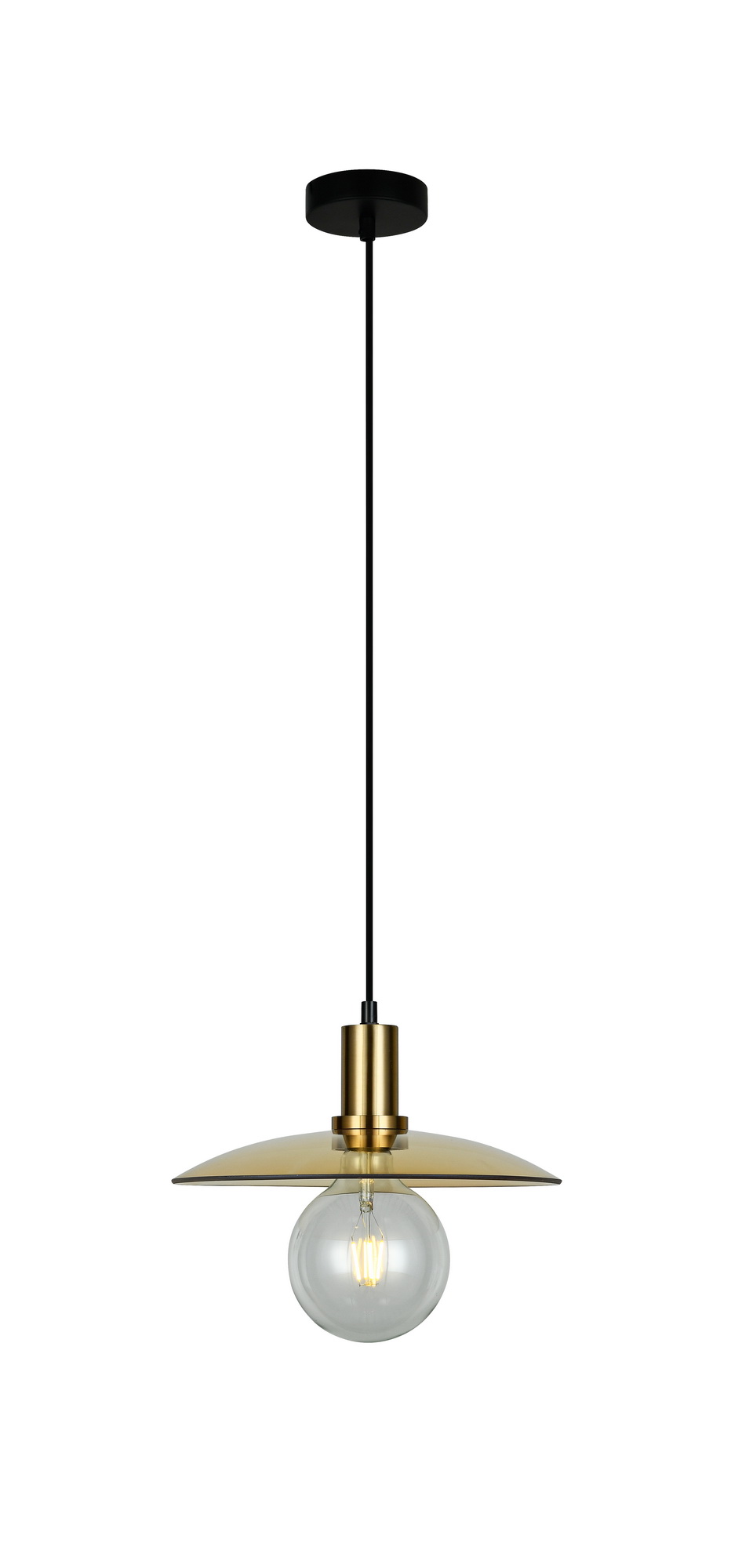 PENDANT ES Amber Glass Coolie w/Ant. Brass Highlight OD300mm