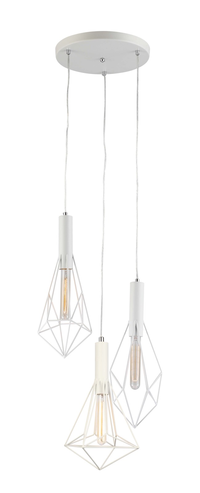 PENDANT ESx3 Wh DIAMOND CAGE x 3 w/RND M/Plate OD390mm