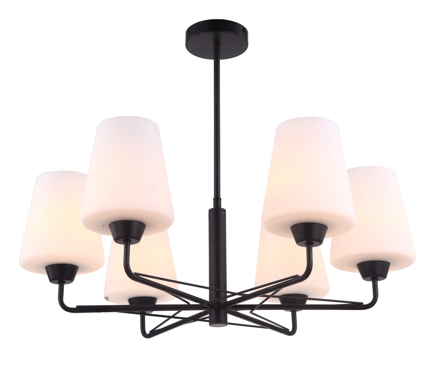 Interior pendant light Material: iron & opal glass Lamp holder: 6xE27 (Max.72W) Globes not included For indoor use only Canopy size: Ø110 x H 25mm Suspension: 300mm rod Warranty: 1 year replacement warranty *Please DO NOT be confused by similar products offered by other suppliers with inferior quality. *Must be installed by a licenced electrician (Installation…
